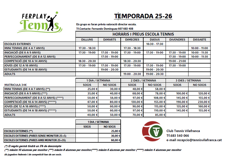 Per a més informació contacteu amb: ferplaytennis@outlook.com/ 607683408 ( Fernando Dominguez)